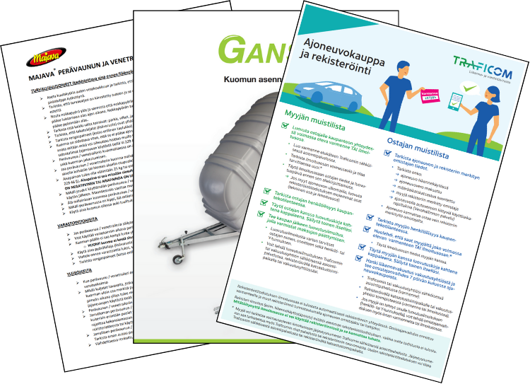 Täältä löydät kattavat ohjeet vaunujemme turvalliseen käyttöön, asennukseen ja huoltoon. Tänne olemme koonneet myös viranomaisten hyväksymät ohjeet liittyen kunnossapitoon, turvalliseen käyttöön ja lisätarvikkeiden asennukseen.