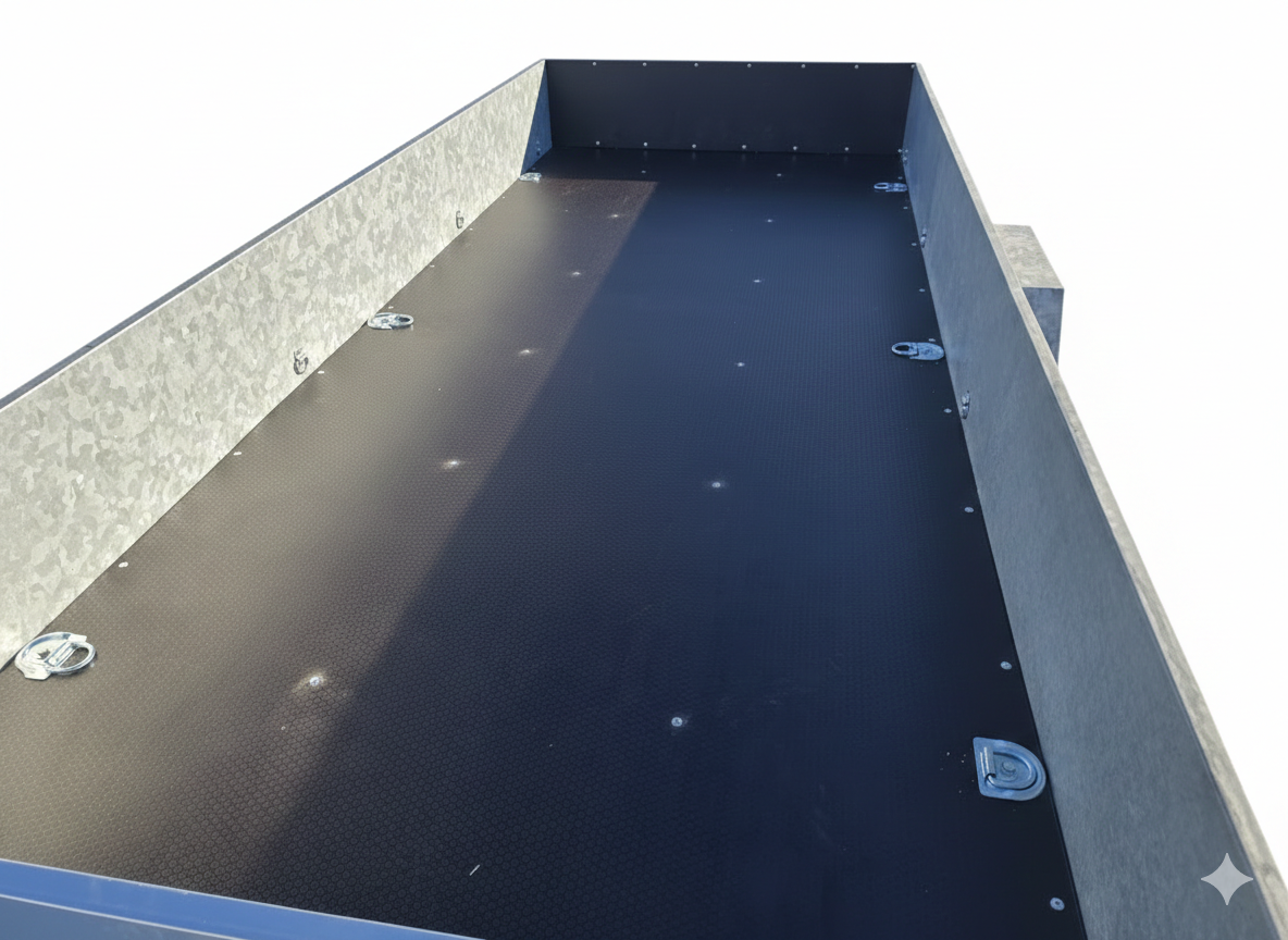 Materiaalina käytämme vain parasta SSAB- terästä. Pohjavaneri on 100 % koivua (9 mm) kestävällä fenoliliukuestepinnalla, ja sen sivut on suojattu kosteuden aiheuttamaa turpoamista vastaan. Vakiovarustukseen kuuluvat lisäksi nokkapyörä, kippi, talviajoon sopivat M+S- renkaat, 13- napainen pistoke sekä kirkkaat LED- etuvalot.