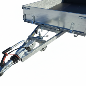 Lehtijouset + iskunvaimentimet, kippi, RST- jarruvaijerit, nokkapyörä, vesitiiviit/huoltovapaat laakerit, jarrut peruutusautomatiikalla, saranoidut päätylaidat, takalaita vaneroitu ajosiltalaidaksi, sisä- ja ulkopuoliset sidontalenkit ja koukut.