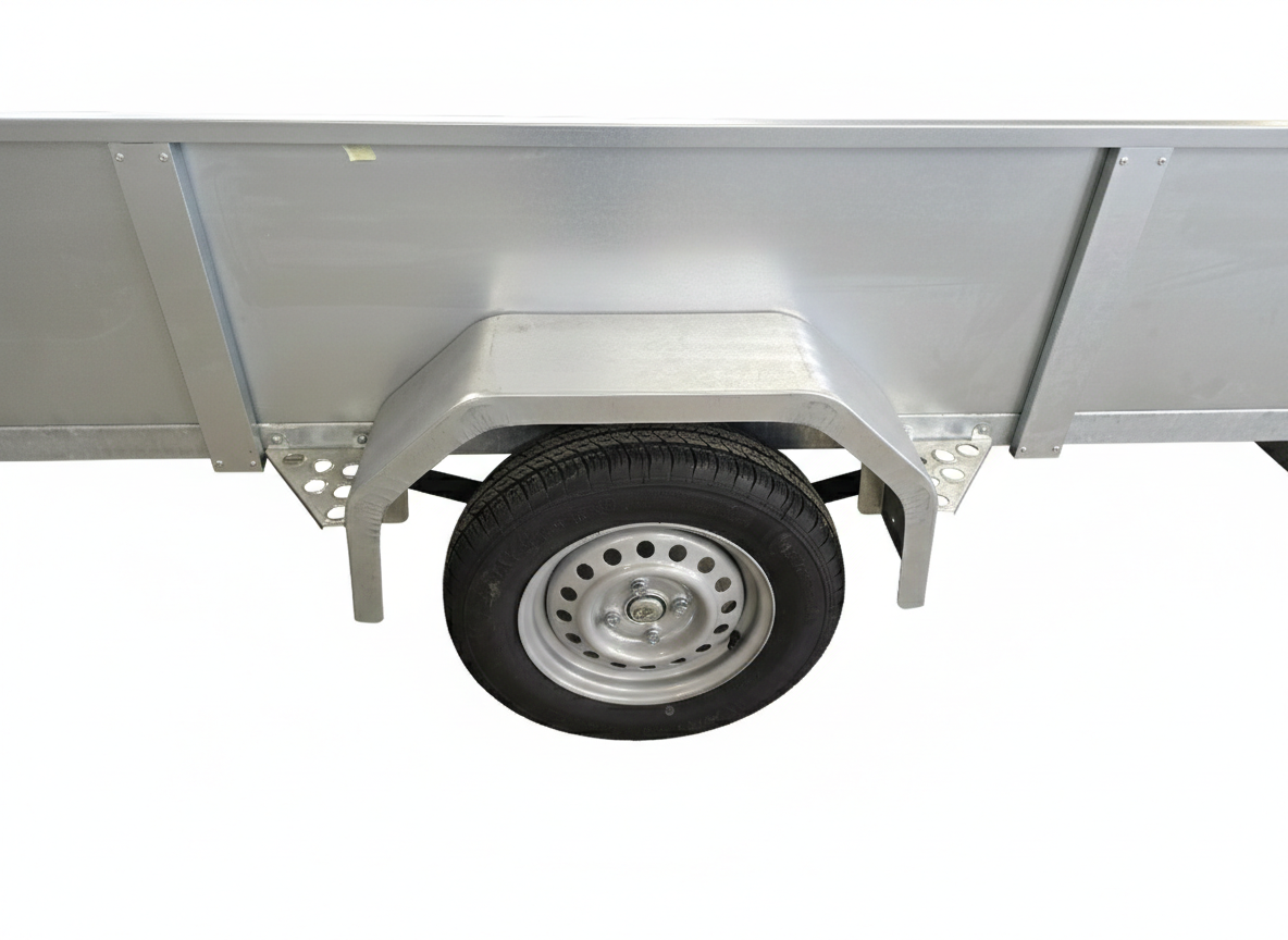 Lehtijouset + iskunvaimentimet, kaasujouselle varustettu kippi, saranoidut päätylaidat, nokkapyörä, sisä- ja ulkopuoliset sidontalenkit ja koukut, vesitiiviit akselinnavat, LED- etuvalot, takalaita vaneroitu ajosillaksi, takalaidan vaijeripidin, askelmat lokasuojissa